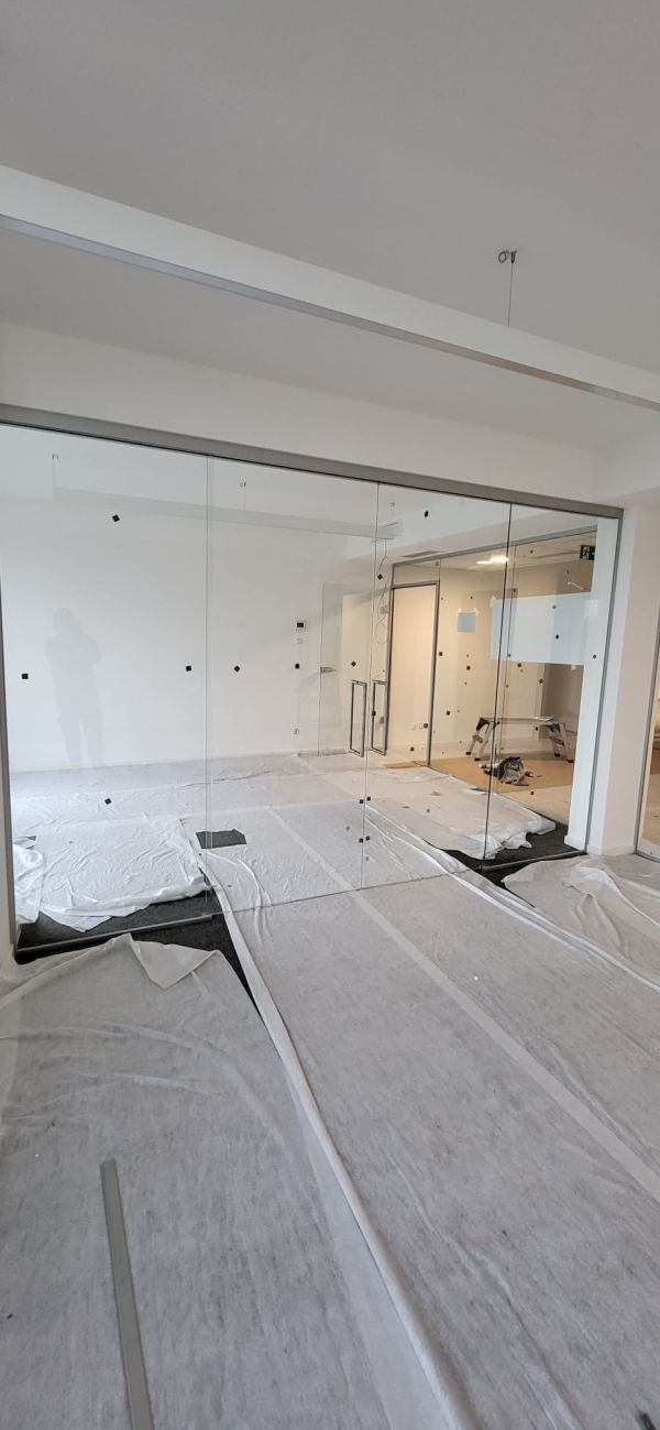 Als Raumteiler, Sichtschutz, Schiebetür, klar durchsichtig, matt, farbig, gebläselt, strukturiert – nichts muss, alles kann.