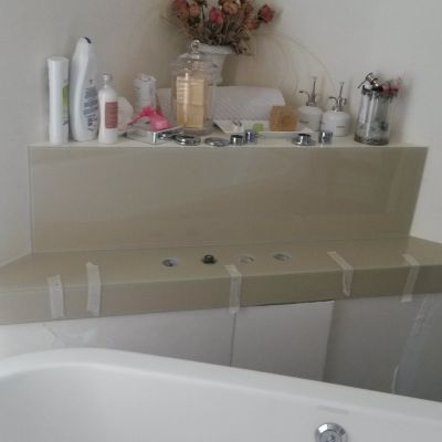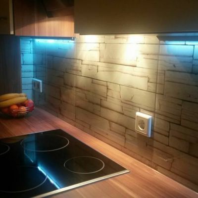 Rückwände erhalten Sie in den unterschiedlichsten optischen Ausführungen: farbig lackiert oder mit Ihrem Wunsch-Motiv bedruckt. Befestigt wird mit Spezialkleber.