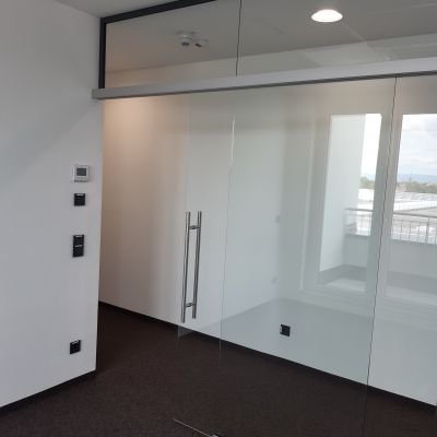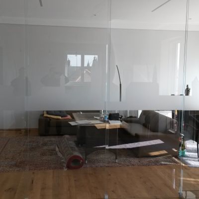 Als Raumteiler, Sichtschutz, Schiebetür, klar durchsichtig, matt, farbig, gebläselt, strukturiert – nichts muss, alles kann.