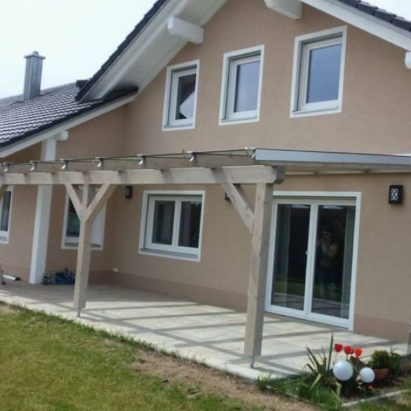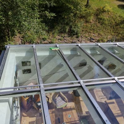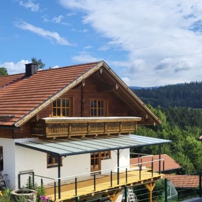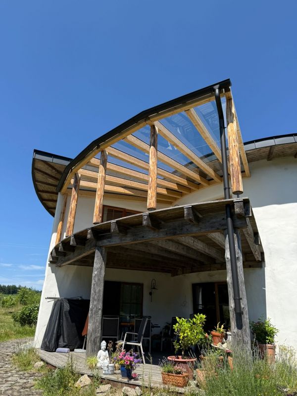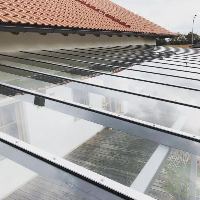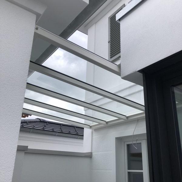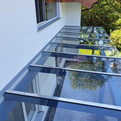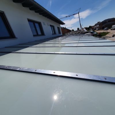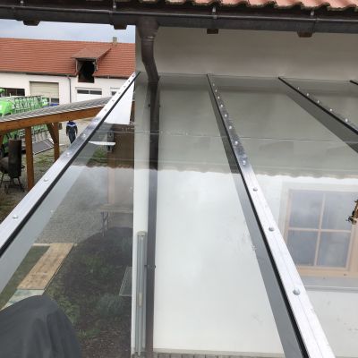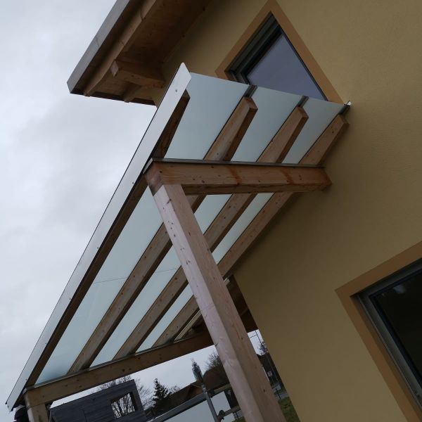 Bei der Befestigung gibt es allerdings etwas zu beachten: Verbundsicherheitsglas (VSG) kann nur in einer Konstruktion aus Leimbindern oder einer Metallkonstruktion angebracht werden. (verwindungsfrei)