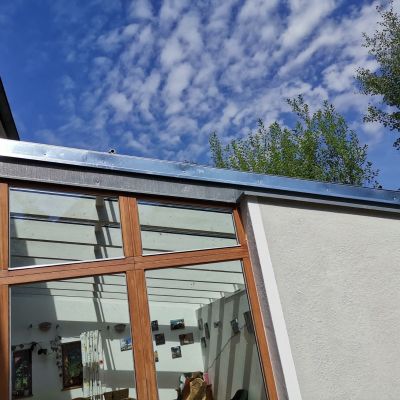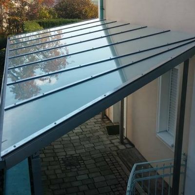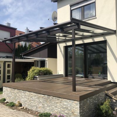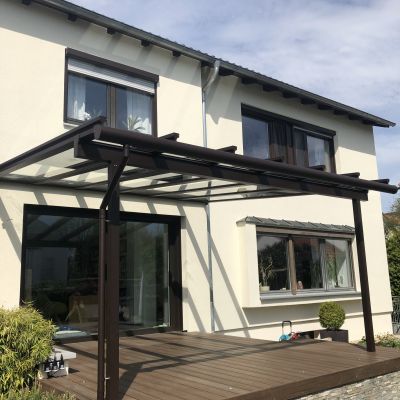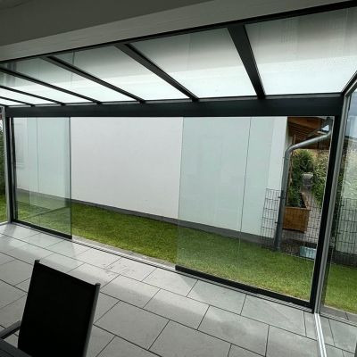 Auf Wunsch kann Ihre neue Terrassenüberdachung auch mit matter Folie angefertigt werden.