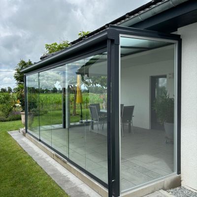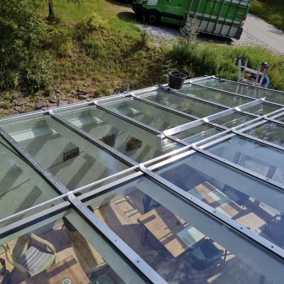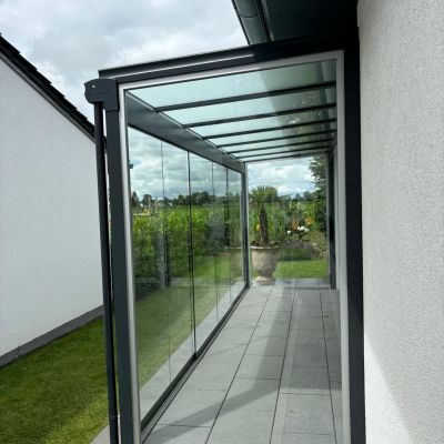 Ein Glasdach schützt nicht nur Sie, sondern auch Ihre Möbel.