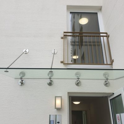 Vordächer aus Glas sind vor allem witterungsbeständig. Sie halten den Regen ab und lassen das Tageslicht durch. Glas-Vordächer integrieren sich harmonisch in das Gesamtbild der Fassade und setzen elegante Akzente.