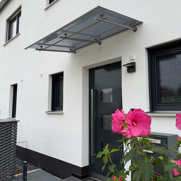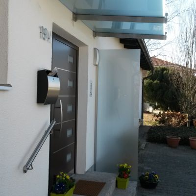Beenden Sie das lästige Schlüssel-Suchen bei Regen oder Schnee. Ein individuell für Sie gefertigtes Vordach aus Glas, verleiht Ihrem Eingangsbereich das gewisse Etwas.