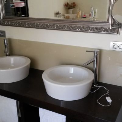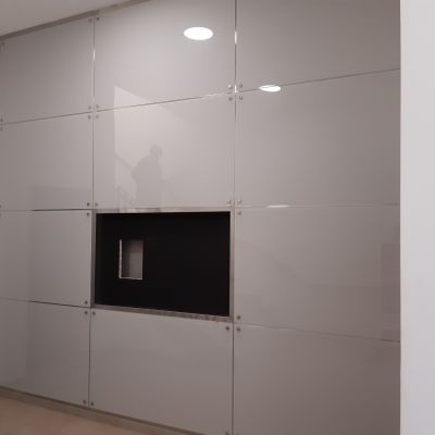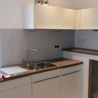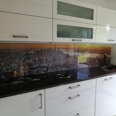 Rückwände erhalten Sie in den unterschiedlichsten optischen Ausführungen: farbig lackiert oder mit Ihrem Wunsch-Motiv bedruckt. Befestigt wird mit Spezialkleber.