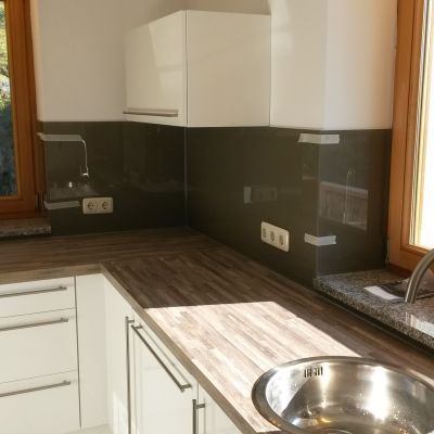 Je nachdem, wo die Rückwand sein soll, fertigen wir von der Glaserei Kronacker die Rückwand aus 6mm dickem Floatglas oder Einscheibensicherheitsglas. (ESG)
