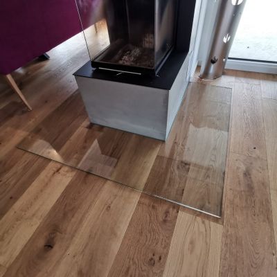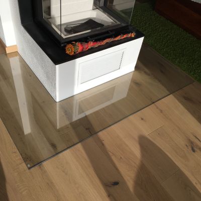Gefertigt werden die Kaminofen-Platten aus Einscheibensicherheitsglas (ESG). Gehärtetes Glas ist notwendig, damit bei Funkenflug oder Glutresten der Boden nicht beschädigt wird.