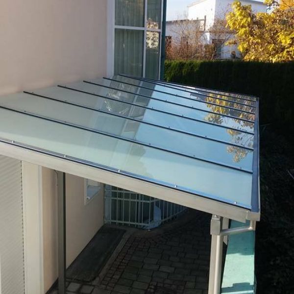 Auf Wunsch kann Ihre neue Terrassenüberdachung auch mit matter Folie angefertigt werden.