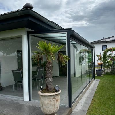 Ein Glasdach schützt nicht nur Sie, sondern auch Ihre Möbel.